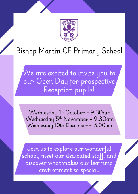 The Local Authority and Governors of Bishop Martin offer places for admission to Reception for children who have celebrated their fourth birthday by August 31st.