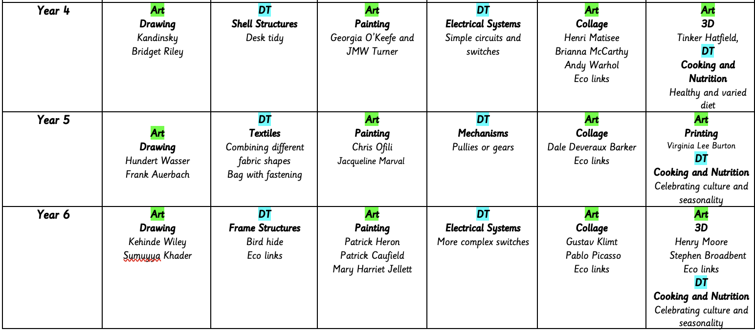 Our curriculum celebrates cultural diversity, featuring artists from various backgrounds to inspire pupils and connect them to broader societal themes. Art is presented as an inclusive medium that both reflects and shapes history, contributing to our cultural richness. Pupils explore diverse artistic styles, deepening their understanding of inclusivity in the art world.